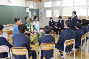 【ヴィンセドールルミナス】かほく市立高松中学校にて交流 投稿者:_ 投稿公開日:2026年2月9日 投稿カテゴリー:お知らせ / 地域社会活動 / 講演・セミナー・研修 2026/1/31 ヴィンセドールルミナスの別宗代表と山田選手、中野選手が かほく市立高松中学校の職業人講話の授業に招待いただきました。 生徒の皆さんとフットサルにて交流を楽しみ、 GENESIS株式会社の取り組みやルミナスの活動について紹介しながら、 それぞれの考えるウェルビーイングについて意見交換をしました。 生徒の皆さんの元気な姿やまっすぐな思いに、私たちもたくさんの力を貰いました! おすすめ 【のとささえーる】震災復興支援活動9/15 2025年9月18日 【白山市地域包括支援センター✕GENESIS✕ルミナス】むらい予防体操教室にてスクラッチアート教室開催 2025年8月28日 【のとささえーる】能登半島地震災害復興支援活動に参加してきました 2025年12月16日